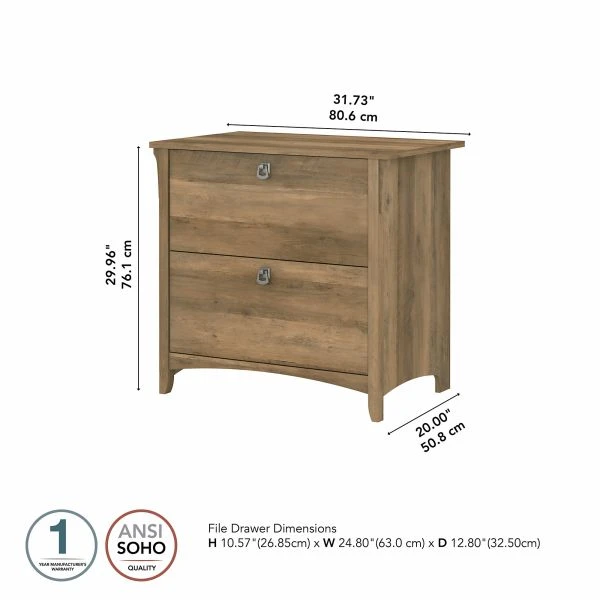 Bush Furniture Salinas 2 Drawer Lateral File Cabinet in Reclaimed Pine – Keep your home office organized with a storage solution that’s as beautiful as it is functional. The Bush Furniture Salinas 2 Drawer Lateral File Cabinet creates a casual feel in your home office with decorative wood details, tapered legs and curved base rails inspired by Mission styling. Two file drawers accept letter, legal and A4-size documents and open on smooth full-extension ball bearing slides so you’ll have no trouble reaching papers all the way in the back. The filing cabinet’s height matches that of the Salinas 60W L Shaped Desk with Storage (sold separately) for the option of creating an extended work surface when positioned side by side. Available in your choice of seven attractive finishes with alluring Tumbled Pewter drawer pulls, the country charm of this file organizer looks great wherever you call home. The 2 Drawer File Cabinet is tested to meet ANSI/SOHO quality standards for safety and performance and is backed by the Bush Furniture 1 Year Manufacturer’s Warranty. Complete your space with coordinating items from the Salinas Collection, including Desks, Office Chairs, Desktop Organizers, Bookcases, Storage Cabinets and more.