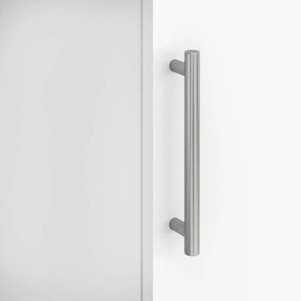 - Vertical storage cabinet contains one adjustable shelf for storing items of various sizes