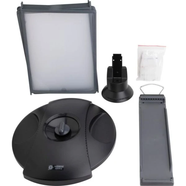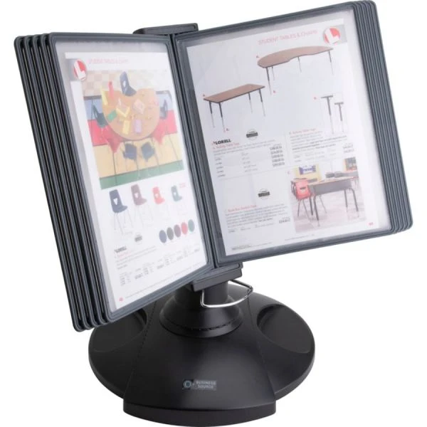 Business Source Deluxe Catalog Display Rack – Catalog rack includes index tabs and panels that each hold two letter-size documents. Stable plastic base allows the panels to rotate 360 degrees. Base has rubber feet to help stabilize the rack from sliding on your worksurface. Injection-molded frame is made from polypropylene.