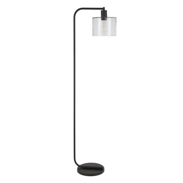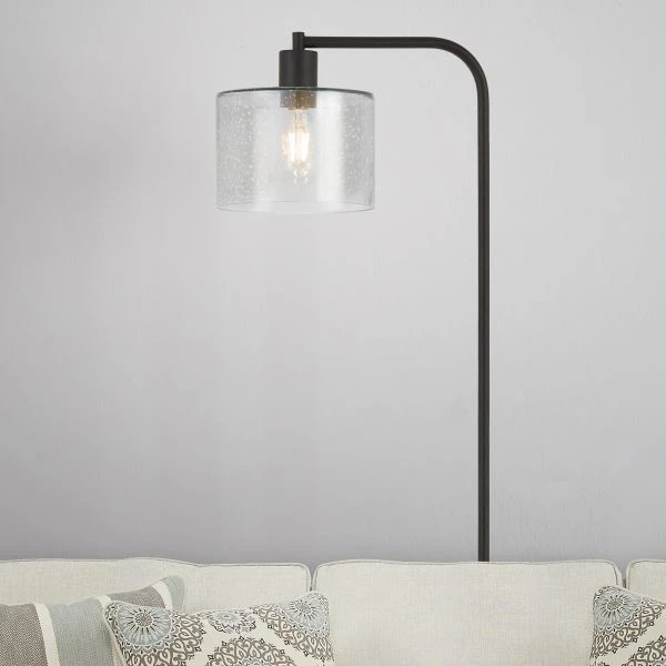 Cadmus 57″ Tall Floor Lamp with Glass Shade in Blackened Bronze/Seeded – This industrial floor lamp takes notes from factory lighting. It lightens the mood with a seeded glass shade, bringing in natural textures to both the lamp and the room around it.