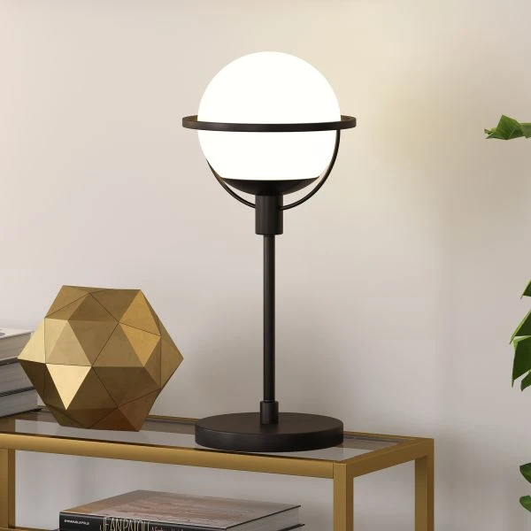 Cieonna 21″ Tall Globe & Stem Table Lamp with Glass Shade in Blackened Bronze/Clear – This globe and stem style lamp adds an airy feel to any room. The glass sphere diffuses light gently into your space, creating an elevated style. The blackened bronze base complements the sleek orb shade with a clean, glamorous and contemporary look. Refresh any room with this modern yet consumable floor lamp.