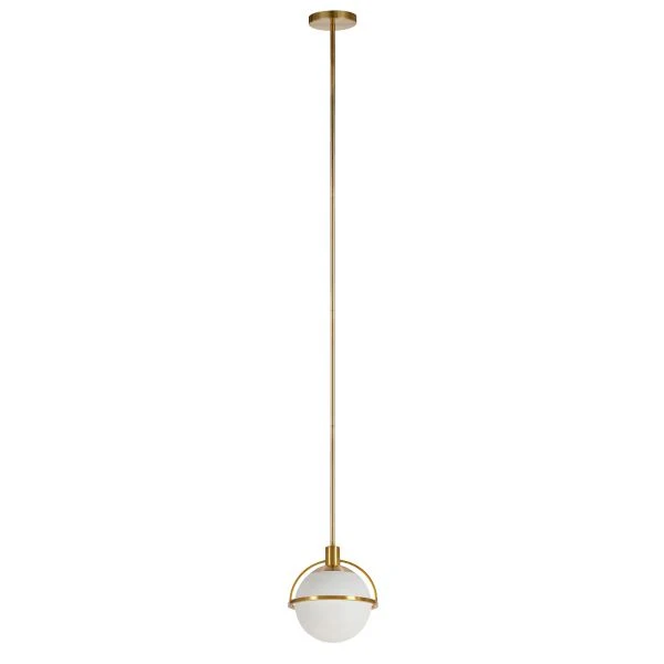 Cieonna 9.38″ Wide Pendant with Glass Shade in Brass/White Milk – This globe and stem style pendant adds an airy feel to any room. The white glass sphere diffuses light gently into your space, creating an elevated style. The warm neutral base complements the sleek orb shade with a clean, glamorous and contemporary look.