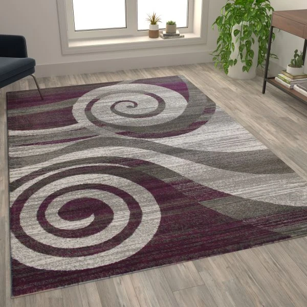 Cirrus Collection 8′ x 10′ Purple Swirl Patterned Olefin Area Rug with Jute Backing for Entryway, Living Room, Bedroom – Bring a dynamic look and feel to any space in your home with the spiral pattern of this modern area rug. Offering not only striking looks, this versatile contemporary accent rug adds warmth to hardwood floors, color in any area, and protects flooring in high-traffic areas. This well woven area rug can be a warm place for your feet by the bed, in front of your couch, or in the hallway. Modern materials allow today’s rugs to last for years. Made from olefin fibers, this comfy area rug is stain and water resistant, colorfast, and provides a soft underfoot feel friendly to kids and pets. The jute backing gives this rug structural integrity and helps promote air flow. Vacuum regularly without the beater bar and spot clean with water and a mild detergent to maintain the look of your new rug.