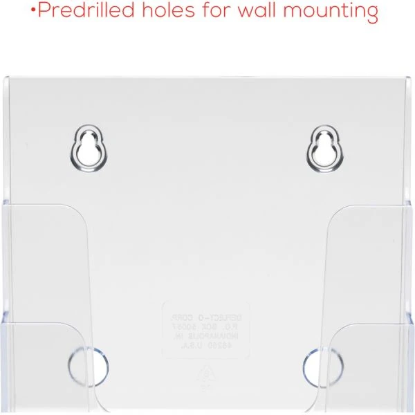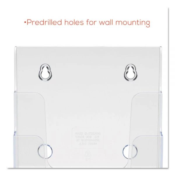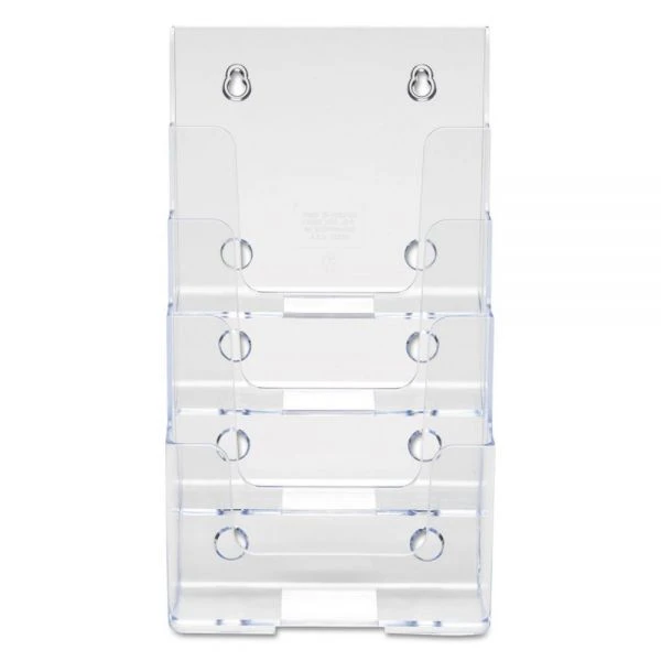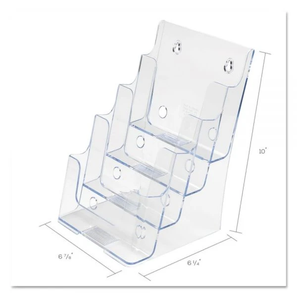 deflecto 4-Compartment DocuHolder, Booklet Size, 6.88w x 6.25d x 10h, Clear – Compact tiered units let you display a variety of literature easily and gives you a better view. Stands alone on countertop or can be mounted on a wall. Each pocket holds literature up to 6 1/2″ wide.