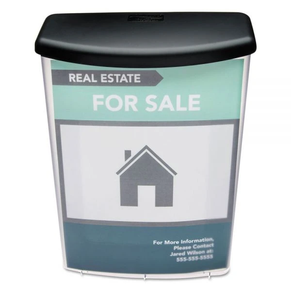 deflecto Outdoor Literature Box, 10w x 4.5d x 13.13h, Clear/Black – Durable, plastic outdoor box is break-resistant and weatherproof. It fits a variety of poles and posts. It is roomy enough to hold an abundance of letter-size, legal-size and A4-size documents. Clear design lets you easily view literature inside. Black lid protects contents. Outdoor box includes plastic ties and screws for mounting.