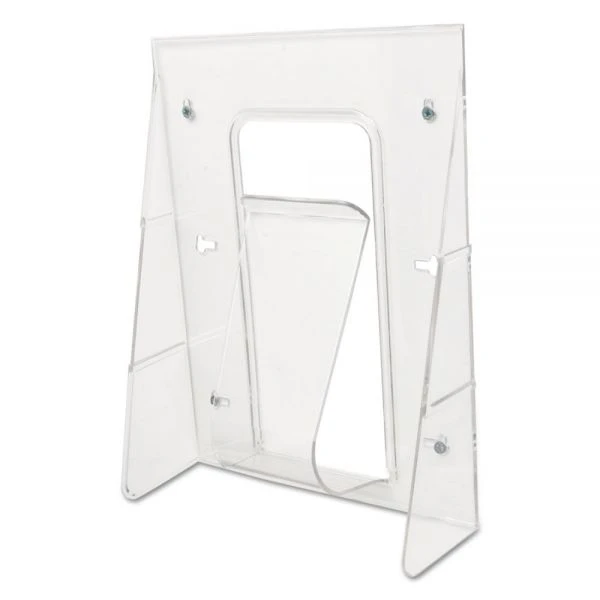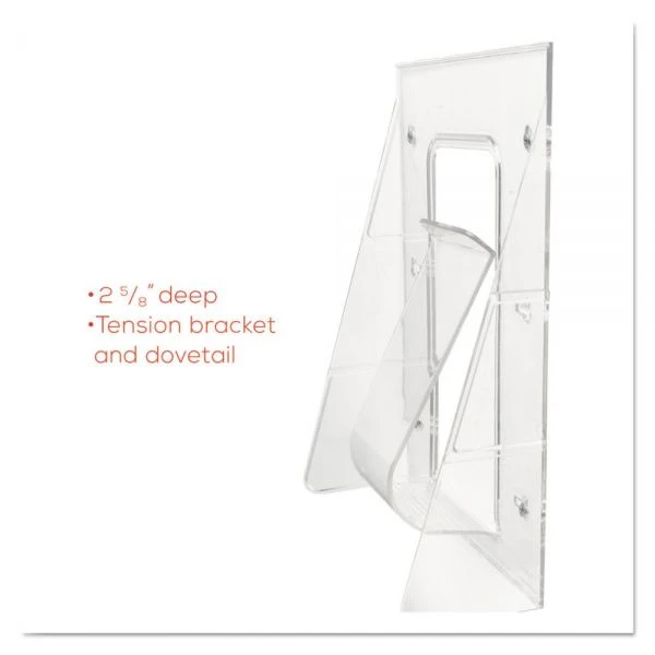 deflecto Stand-Tall Wall-Mount Literature Rack, Magazine, 9.13w x 3.25d x 11.88h, Clear – Convenient display rack with single pocket is designed for magazines, pamphlets and brochures. Clear holder is break-resistant. Tension brackets hold contents upright. Mounts on wall or stands alone on countertop (no legs needed). Linking mechanism on each side enables you to interchange sizes to create a customized system. Embedded groove prevents sheets from sliding. Display rack includes mounting hardware.