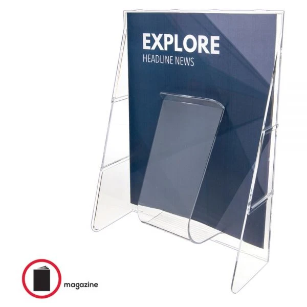 - Spring-action design secures literature upright.