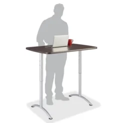 Iceberg ARC Adjustable-Height Table, Rectangular Top, 30w X 48d X 36 To 48h, Gray Walnut/Silver