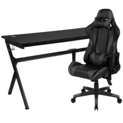Optis Gaming Desk And Gray/Black Reclining Gaming Chair Set /Cup Holder/Headphone Hook/Removable Mouse Pad Top – Wire Management