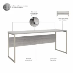 Bush Business Furniture Hybrid 72W X 24D Computer Table Desk With Metal Legs In Platinum Gray