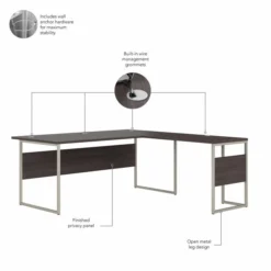 Bush Business Furniture Hybrid 72W X 36D L Shaped Table Desk With Metal Legs In Storm Gray