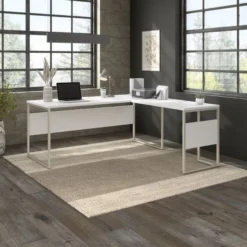 Bush Business Furniture Hybrid 72W X 30D L Shaped Table Desk With Metal Legs In White
