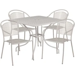 Oia Commercial Grade 35.5″ Square Light Gray Indoor-Outdoor Steel Patio Table Set With 4 Round Back Chairs