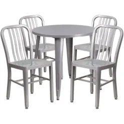 Conrad Commercial Grade 30″ Round Red Metal Indoor-Outdoor Table Set With 2 Arm Chairs