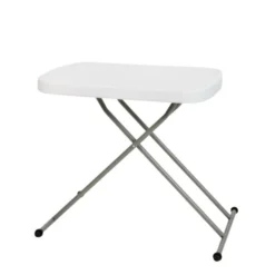 Elon 26 Inch Granite White Indoor/Outdoor Plastic Folding Table, Adjustable Height Commercial Grade Side Table, Laptop Table, TV Tray