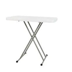 Elon 30 Inch Granite White Indoor/Outdoor Plastic Folding Table, Adjustable Height Commercial Grade Side Table, Laptop Table, TV Tray