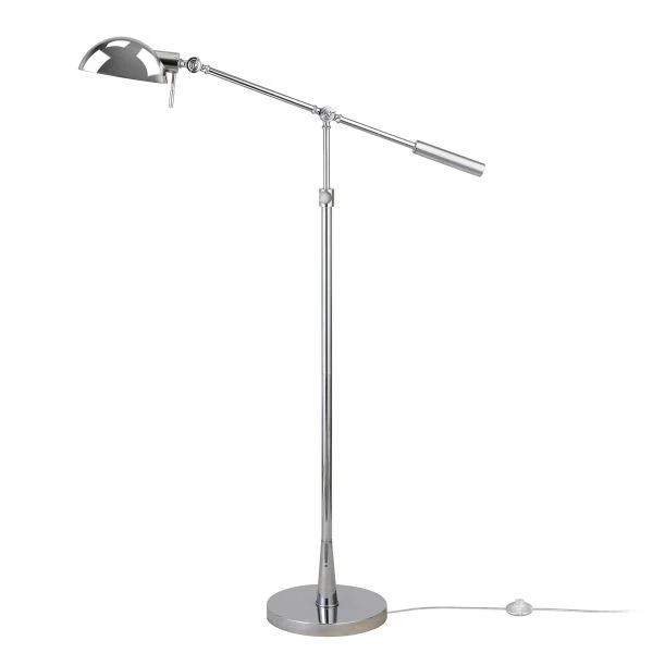 Dexter Height Adjustable/Tilting Floor Lamp with Metal Shade in Polished Nickel/Polished Nickel – Upgrade the lighting of your living room, office, or craft room with this modern update of a classic task lamp. The low-profile design has a boom-style arm that can be adjusted to cast light at a variety of angles. A sleek dome-shaped metal shade creates ample downward illumination, making this the perfect lamp to cast a little extra light where you need it most.