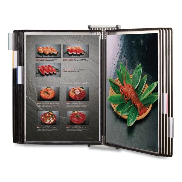 - Ten black-frame, letter size antimicrobial pivoting pockets for 20 total views.