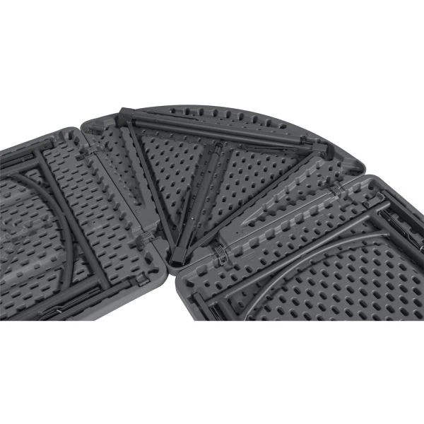 Dorel Zown Classic 24″ Corner Blow Mold Fold Table – ZOWN Classic Corner Commercial Blow Mold Folding Table features a small, compact size to perfectly seat one person in an office setting or be combined with another family of tables. Its durable construction is molded from HDPE, a premium resin material capable of withstanding all weather elements for reliable indoor and outdoor use. Angular design provides maximum efficiency and adaptability when being moved into different designs. For example, it can be combined with additional tables to create half-moon shape or a full circle. Telescopic legs slide in for optimal folding. Despite its capability to hold up to 200 lb., the corner table is incredibly lightweight and easy to transport.