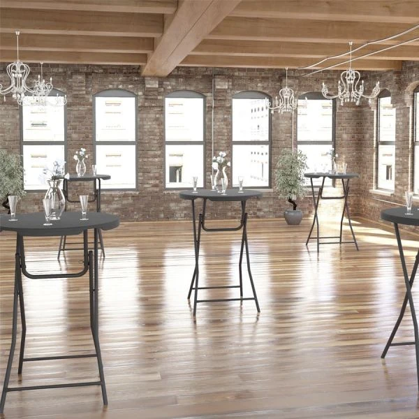 Dorel Zown Commercial Cocktail Folding Table – ZOWN Classic Commercial Cocktail Folding Table is perfect for events such as weddings, cocktail parties, high school proms and homecomings. Its durable construction is molded from HDPE, a premium resin material capable of withstanding all weather elements for reliable indoor and outdoor use. Large base provides great stability while withstanding a weight capacity of approximately 350 lb. Manual lock on the legs and integrated foot pads ensure no floor is damaged when in use and will never fold under pressure during events. Lightweight design allows you to easily fold the table when it’s time to be taken down.