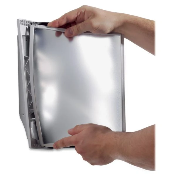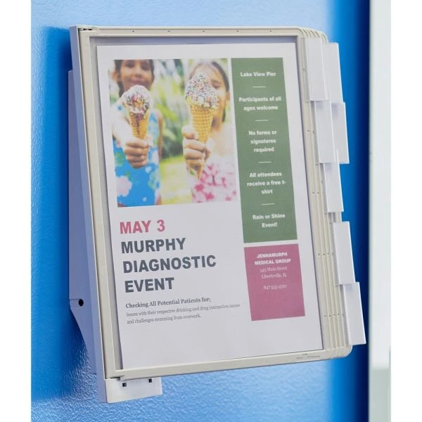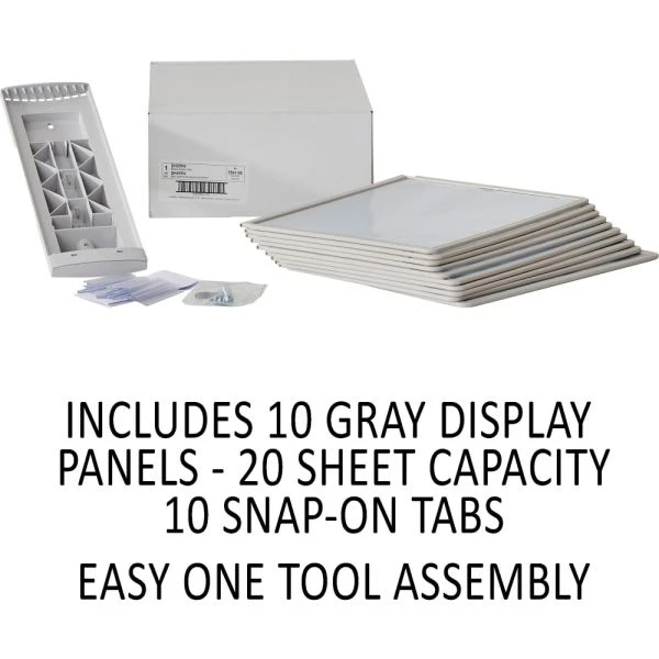 DURABLE SHERPA Wall Mounted Reference Display System – Sherpa 10-panel display wall reference system blends sturdy plastic construction with contemporary design. System includes a wall bracket, 10 letter-size panel sleeves (20 viewing sides) with reinforced molded borders and 10 snap-on tabs. Expands by adding systems side by side.