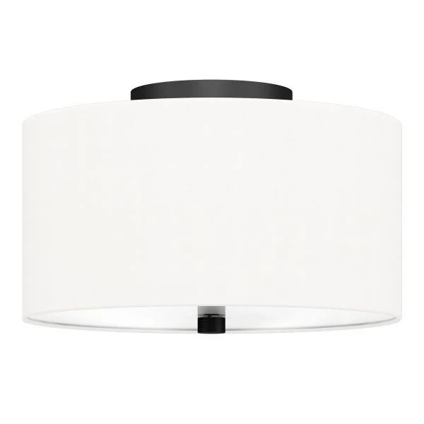 Ellis 12″ Flush Mount with Fabric Shade in Matte Black/White – Bring a welcoming glow to your kitchen, entryway, or dining room with this classic semi-flush mount fixture. The wide drum shade features a diffuser on the bottom to gently cast an ambient glow throughout the room. Neutral metallic accents blend easily into any color palette.