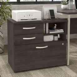 Bush Business Furniture Hybrid Office Storage Cabinet With Drawers And Shelves In Storm Gray