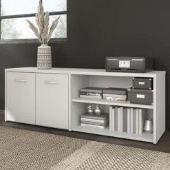 Bush Business Furniture Hybrid Office Storage Cabinet With Drawers And Shelves In White