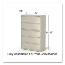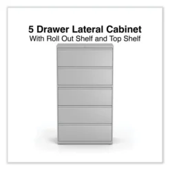 Alera Lateral File, 5 Legal/Letter/A4/A5-Size File Drawers, Putty, 42″ X 18.63″ X 67.63″