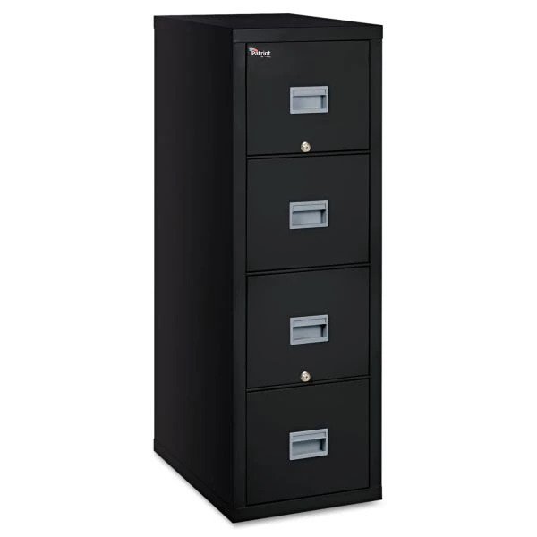 FireKing Patriot by FireKing Insulated Fire File, 1-Hour Fire Protection, 4 Legal/Letter File Drawers, Black, 17.75″ x 25″ x 52.75″ – Value-priced fire protection for all your important files. Insulated steel construction with a durable powder coated finish. Locking drawers operate on full-extension ball bearing slides. Insulation between drawers makes each drawer a separate, fireproof unit.