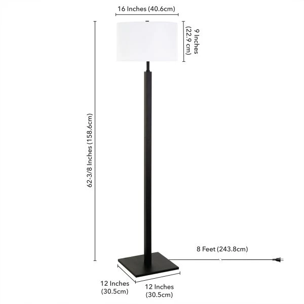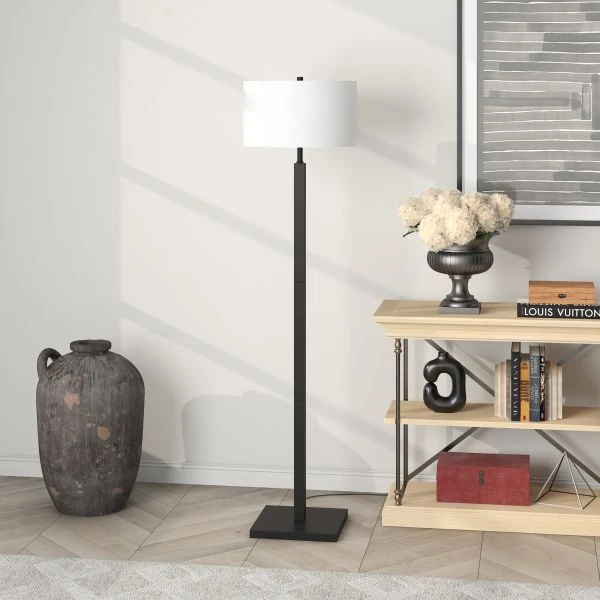 Flaherty 62.32″ Tall Floor Lamp with Fabric Shade in Blackened Bronze/White – This simple and elegant modern floor lamp is the perfect minimalist addition to any room in your home. Anchored by a square base, its sleek silhouette is topped with a generous drum shade in crisp linen. Perfectly styled for traditional and transitional spaces, this fixture can blend in or stand out in many décor styles and color schemes.
