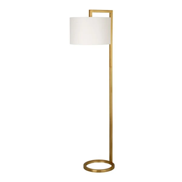 Grayson 64″ Tall Floor Lamp with Fabric Shade in Brass/White – This timeless floor lamp is the perfect addition to your living room area. Designed to warm up your space with the soft lines of a round shade and round base, this premium metal standing lamp stands at 64″ tall. It’s minimalist lines and warm neutral finishes blend seamlessly with any decor style or color scheme.