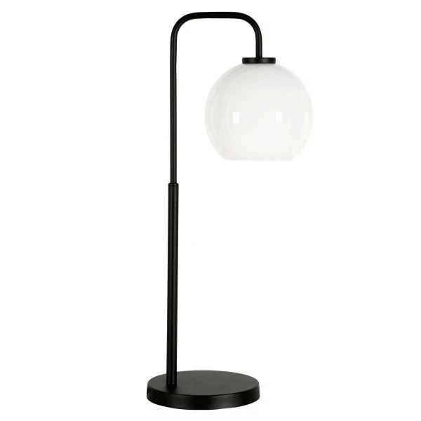 Harrison 27″ Tall Arc Table Lamp with Glass Shade in Blackened Bronze/White Milk – Bring a touch of modern elegance to your living room or bedroom with this eye-catching minimalist table lamp. The arc of the lamp leads to a glass globe shade that adds sophistication and warm lines to the design of your home. Let this lamp’s appealing blend of curves and angles illuminate your space in style.