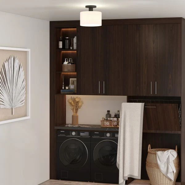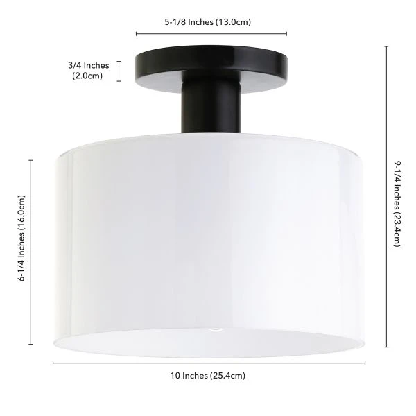 Henri 10″ Wide Semi Flush Mount with Glass Shade in Matte Black/White Milk – With a style inspired by the industrial revolution but appropriate for a coastal beach house, this semi flush mount ceiling light brings true mood lighting to your space. The classic glass drum shade and streamlined hardware gives this fixture a retro feel that complements many decor styles. The on-trend metallic finish provides a perfect complement to nearly any color scheme.