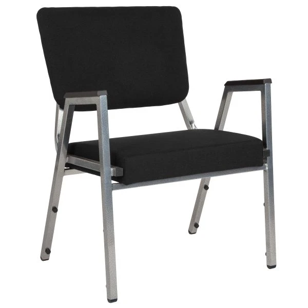 HERCULES Series 1000 lb. Rated Black Antimicrobial Fabric Bariatric Medical Reception Arm Chair with 3/4 Panel Back – Provide safe seating for all patients in the healthcare industry with these medical grade reception chairs. Settle in faster with a 21.5″ extra wide seat with thick cushioning while the supportive 18-gauge tubular frame withstands up to 1000 pounds. The chair arms give extra support to help users ease into the chair. Assemble group therapy sessions placing these metal chairs in a circle. These 3/4 open back bariatric guest chairs can be used for temporary sessions or setup permanently in your waiting room. These metal chairs stack up to 10 high for storage when not in use while the plastic bumper guards safeguard the frame from scratches. If you need seating for your healthcare facility these antimicrobial guest chairs are an excellent choice for your waiting room and patient room. Designed for intensive use this easy to clean chair is optimal for your high traffic environment.