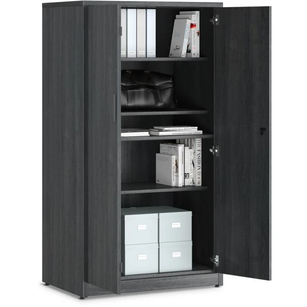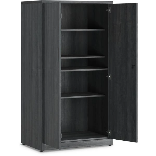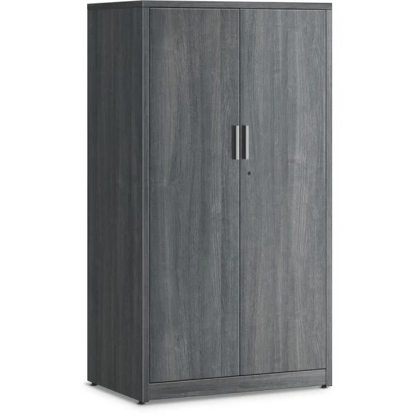 HON 10500 Series Sterling Ash Laminate Desking – Locking storage cabinet with full-width shelves is part of the HON 10500 Series that maximizes footprints with a variety of layout options to support all the ways people work, no matter the size of the space. Large storage area includes five, full-width (side-to-side) shelves. Three shelves adjust in 2-1/2″ increments. Cabinet height matches credenza or return plus stack-on storage height (not included). Doors open 110 degrees from closed position. Core-removable lock makes rekeying quick and easy. Durable, easy-care, Sterling Ash, thermal-fused laminate resists scratches and stains.