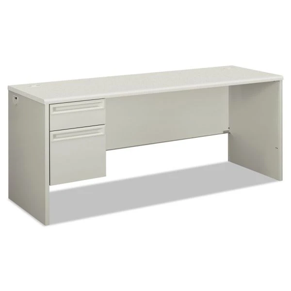 HON 38000 Series Single Pedestal Credenza, Left, 72w x 24d x 29.5h, Silver/Gray – Steel frame with steel-reinforced, high-pressure laminate top for superior rigidity and strength. Drawers operate on heavy-duty steel ball bearing suspensions. High-sided, full-extension file drawer accepts hanging file folders; box drawer extends three-quarters. HON βOne Keyβ core removable locks. Cord management with ports and hidden channels.