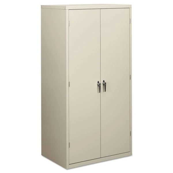 HON Assembled Storage Cabinet, 36w x 24.25d x 71.75h, Light Gray – Solid as steel, Brigade Storage cabinets from HON stand up to high expectations. These rugged, factory-assembled cabinets are engineered to withstand years of active use. The perimeter-welded case is reinforced for durability. Likewise, the doors feature steel inner stiffeners to keep them working well time after time. Leveling glides are standard on the front. There are two Chrome handles, one fixed and one locking, and the HON one-key locking system can be replaced as security needs change. Shelves can be adjusted in 2″ increments, and extra shelves or a coat bar are optional.