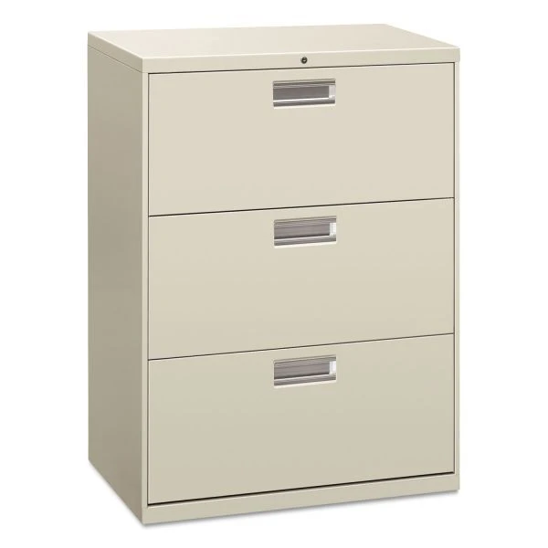 HON Brigade 600 Series Lateral File, 3 Legal/Letter-Size File Drawers, Light Gray, 30″ x 18″ x 39.13″ – HON Brigade 600 Series lateral files are engineered for high-activity filing and retrieval in corporations, educational institutions, hospitals, and government offices. The rugged inner steel grid stands up to years of rigorous use. Most models feature standard drawers, and select models have receding doors with roll-out shelves. Heavy-duty ball-bearing suspensions are tested to simulate decades of use and still perform flawlessly. The mechanical interlock inhibits more than one drawer from opening at a time. Counterweights are factory-installed where required to maintain stability when a drawer is opened, and made from recycled material. Side-to-side hangrails for letter or legal filing are standard, and optional front-to-back hangrails can be ordered for high-density letter filing on some cabinets. All four leveling glides can be adjusted even when drawers are full. Removable lock cores can be changed on location.