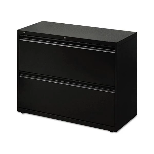 HON Brigade 800 Series Lateral File, 2 Legal/Letter-Size File Drawers, Black, 36″ x 18″ x 28″ – HON Brigade 800 Series lateral files are engineered for high-activity filing and retrieval in corporations, educational institutions, hospitals, and government offices. The rugged inner steel grid stands up to years of rigorous use. Most models feature standard drawers. Select models have receding doors with roll-out shelves. Heavy-duty ball-bearing suspensions are tested to simulate decades of use and still perform flawlessly. The mechanical interlock inhibits more than one drawer from opening at a time. Counterweights are factory-installed where required to maintain stability when a drawer is opened, and made from recycled material. Side-to-side hangrails for letter or legal filing are standard. Optional front-to-back hangrails can be ordered for high-density letter filing on some cabinets. All four leveling glides can be adjusted even when drawers are full. Removable lock cores can be changed on location.