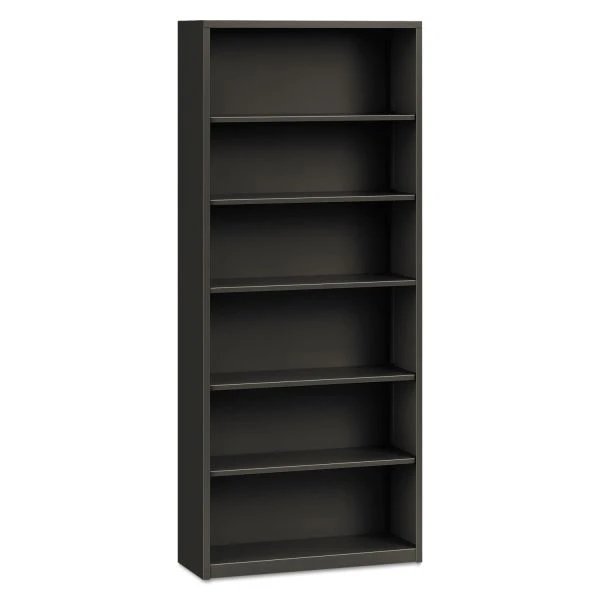 HON Metal Bookcase, Six-Shelf, 34.5w x 12.63d x 81.13h, Charcoal – Brigade steel bookcases stand up to whatever needs to be stowed. They’re very practical, not to mention a great value. Fully assembled and factory welded, they’ll go right to work, and still be on the job years later. Shelves handle over 87 pounds apiece, and move in 1/2″ increments. Clean looking and renowned for reliability, Brigade bookcases are from HON, the company that wrote the book on storage.