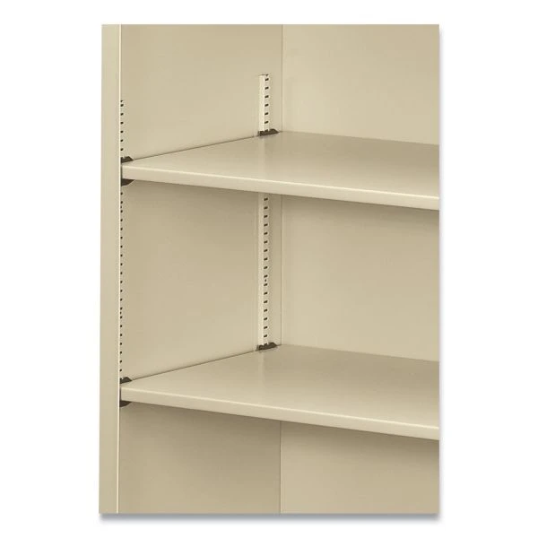 HON Metal Bookcase, Three-Shelf, 34.5w x 12.63d x 41h, Putty – Brigade steel bookcases stand up to whatever needs to be stowed. They’re very practical, not to mention a great value. Fully assembled and factory welded, they’ll go right to work, and still be on the job years later. Shelves handle over 87 pounds apiece, and move in 1/2″ increments. Clean looking and renowned for reliability, Brigade bookcases are from HON, the company that wrote the book on storage.