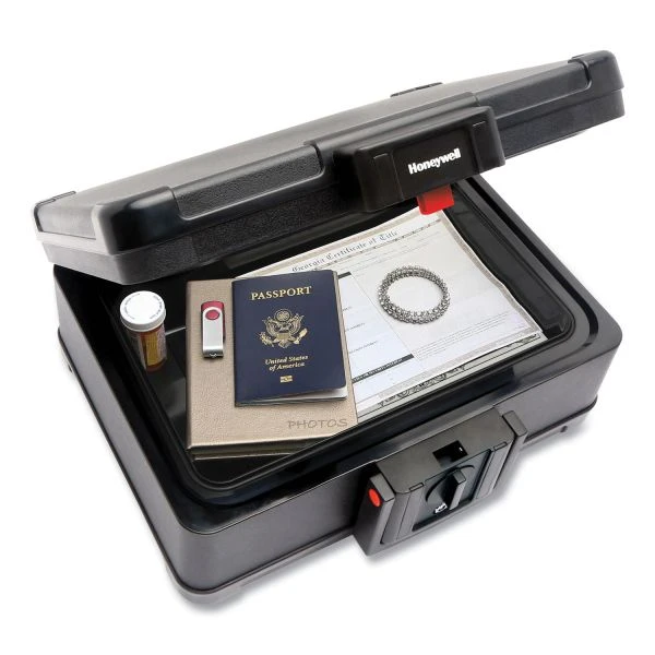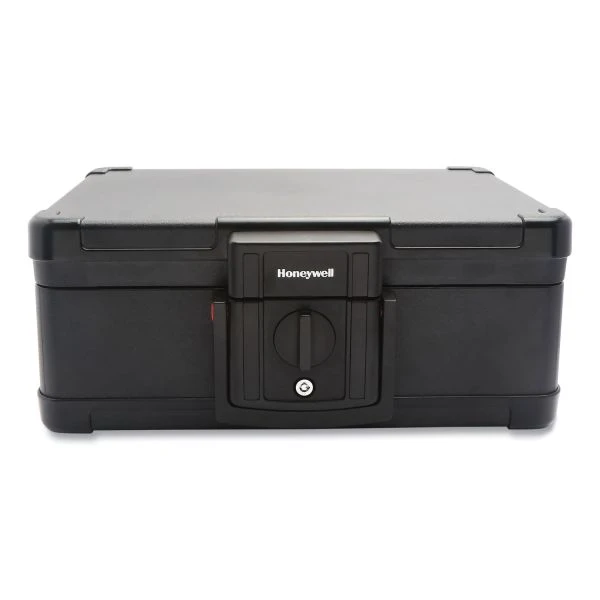 Honeywell Fire and Waterproof Safe Chest with Carry Handle, 16 x 12.6 x 6.6, Black – Safeguard paper documents, files and digital media. 30 minute fire protection. Waterproof for up to 72 hours. Stores letter and A4 documents flat without folding. Lightweight construction. Fold down carry handle and two keys.