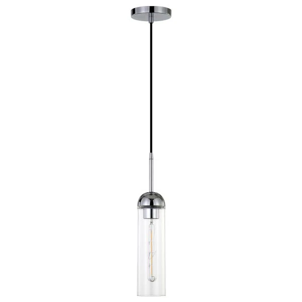 Kagan 3.5″ Wide Pendant with Glass Shade in Polished Nickel/Clear – Small in size but big on style, this transitional mini pendant is a perfect statement light in your foyer, breakfast nook, or paired as bedside lighting. Neutral metallic accents include a domed cap, creating soft lines atop the cylindrical glass shade. The 8′ foot adjustable cord lets you customize this fixture to fit your space perfectly.