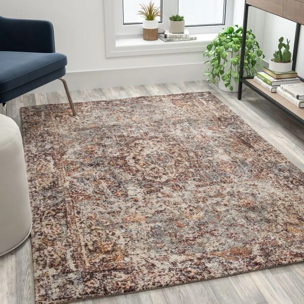 - Traditional Old English Distressed Area Rug Suitable for Multiple Flooring Types
