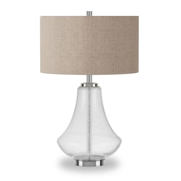 Lagos 23″ Tall Table Lamp with Fabric Shade in Seeded Glass/Polished Nickel/Flax – This table lamp combines natural elements of the seeded glass body and linen shade for an elegant organic feel.