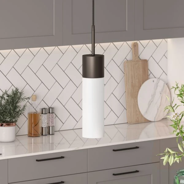 Lance 3.5″ Wide Pendant with Glass Shade in Blackened Bronze/White Milk – Cast a welcoming glow in the foyer or bring a bit of brightness to your kitchen island with this modern pendant light. Crafted with on-trend white milk glass, it features an industrial design with polished hardware for a contemporary and streamlined look that works well in all types of spaces.