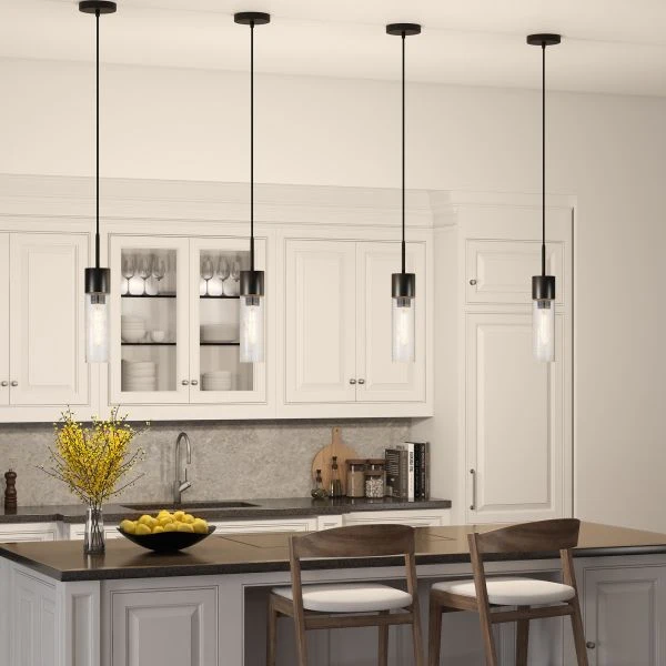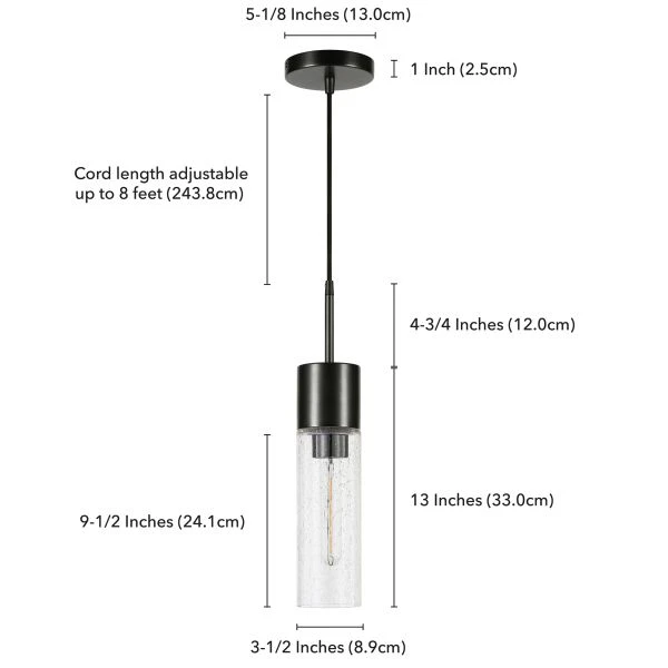 Lance 3.5″ Wide Pendant with Glass Shade in Blackened Steel/Seeded – Cast a welcoming glow in the foyer or bring a bit of brightness to your kitchen island with this modern pendant light. Crafted from metal and seeded glass, it features an industrial design with polished hardware for a contemporary and streamlined look that works well in all types of spaces. Its single light is exposed through the glass shade, complemented by the metal hardware.