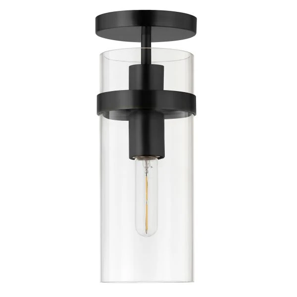Langdon 5″ Wide Semi Flush Mount with Glass Shade in Blackened Bronze/Clear – Bring a touch of modern elegance to your home with this semi flush mount ceiling light that creates a classic, luxe look in your entranceway, hallway, or dining room. The perfectly paired metallic accents coordinate with any color scheme, while the clear glass shade showcases the bulb of your choice. Its transitional style lets this fixture blend in or stand out in any room of your home.