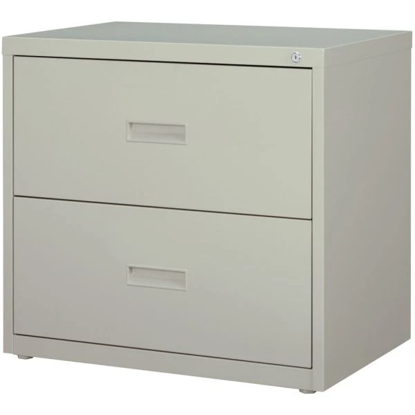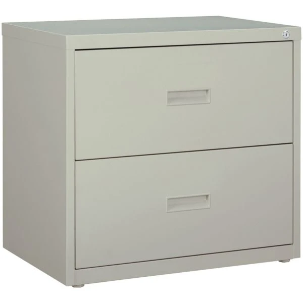 Lorell 2 Drawer Lateral File Cabinet, Letter/Legal/A4, 30″ Wide, Light Gray – Two-drawer lateral file offers side-to-side filing for letter-size, legal-size or A4-size folders with the included hanging file rails to meet your filing needs. Interlock system prohibits the extension of more than one drawer at a time. Counterweight prevents tipping. Both versatile file drawers offer three-part, steel ball-bearing, slide suspension. Commercial-grade lateral file is equipped with a core-removable lock for security, monochromatic drawer pulls, and two adjustable leveling guides for stabilization. Steel construction contains recycled material. 30 wide lateral file meets and/or exceeds applicable ANSI/BIFMA standards.”